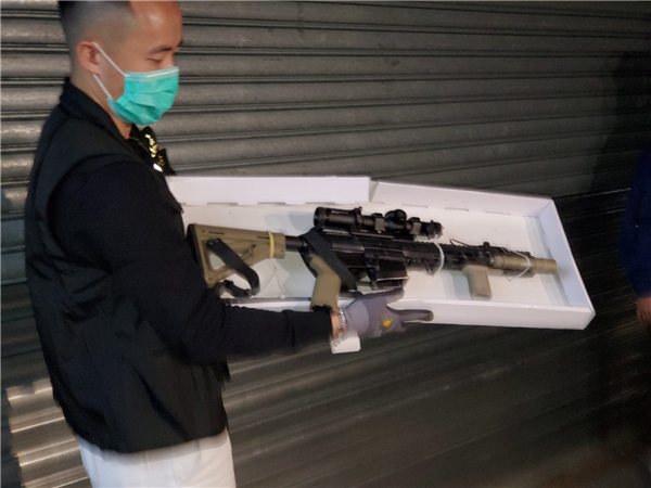 探員展示搜獲的AR15 長距離步槍,性能良好。