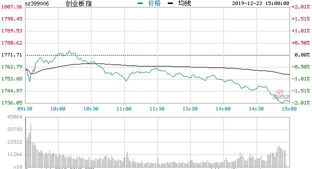 12月23日消息,三大指数低开,小幅下探后回升翻红,券商、水泥板块活跃。经下探回升之后指数再度走弱,创指跌逾1%。临近上午收盘,指数跌幅收窄,半导体及元件板块走弱。午后,大盘震荡走低,三大股指均跌逾1%。盘面上,市场个股表现较为颓势,临近收盘,指数继续走弱,创指一度跌逾2%。总体上,个股呈现普跌态势,逾3000只个股下挫,两市跌停个股近40只,市场人气趋冷,赚钱效应较差。截止收盘,沪指报2962.75点,跌1.4%;深成指报10056.21点,跌1.69%;创指报1736.62点,跌1.98%。