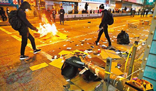 暴徒在聖誕節到處堵路破壞及縱火,旺角連續兩日成為「重災區」。 中通社