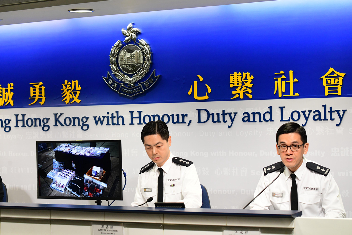 昨午,警察公共關係科總警司郭嘉銓、警察公共關係科高級警司(媒體聯絡及傳訊)江永祥、有組織罪案及三合會調查科高級警司李桂華及行動部高級警司汪威遜在警察總部會見傳媒。