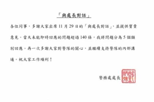 早前,一份鄧炳強署名的文件顯示,香港警方正研究採購新型防暴服裝、護頸及防割、防腐、阻燃的多功能防護衣等裝備,以提升前線警員的防護能力;為免警員家屬受擾。