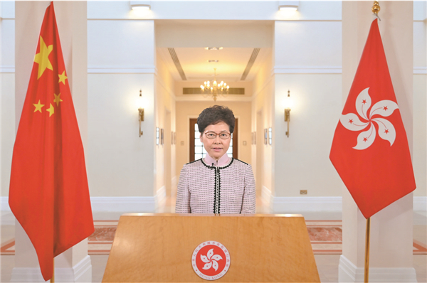 10月16日中午,特首林鄭月娥透過視像發表施政報告。