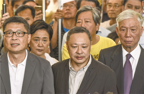 「佔中三丑」陳健民(左)、戴耀廷(中)、朱耀明(右)被判罪成。