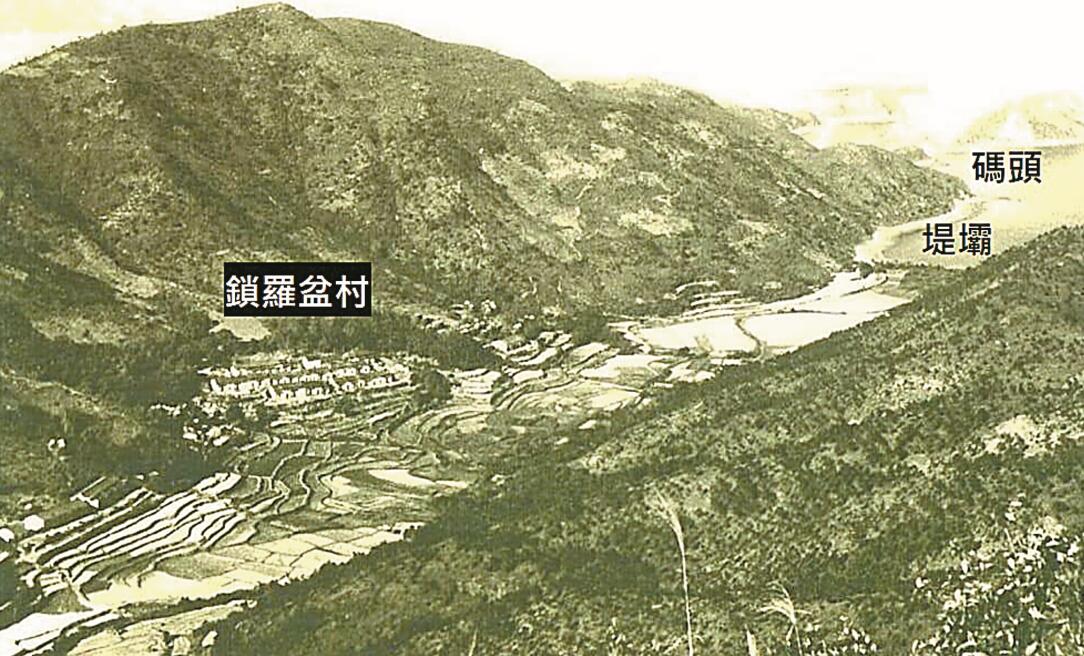 從前的人靠山吃山,靠水吃水,黃慶祥說,祖先就利用當地的環境展開生活,鎖羅盆村三面環山,東北面向海,祖先就圍堤造田,並依山勢,開墾不少梯田。耕種以外,也出海捕魚。從鎖羅盆碼頭往前不久,就清楚看見長長的堤壩。過了村口的影樹,是一條石屎小路。這條小路大有來頭,它原先是泥路,為便利村民,當年嘉道理農業輔助會提供材料,村民出人力興築而成,時維1958年。