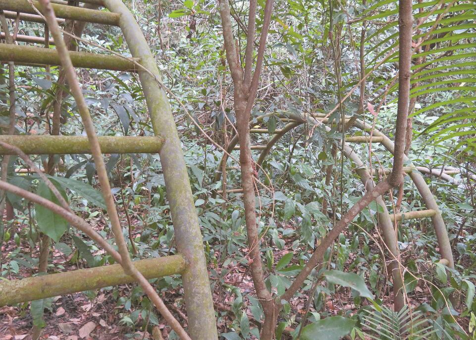 村中仍有舊式兒童玩樂設施,已被樹藤、樹、草圍繞。