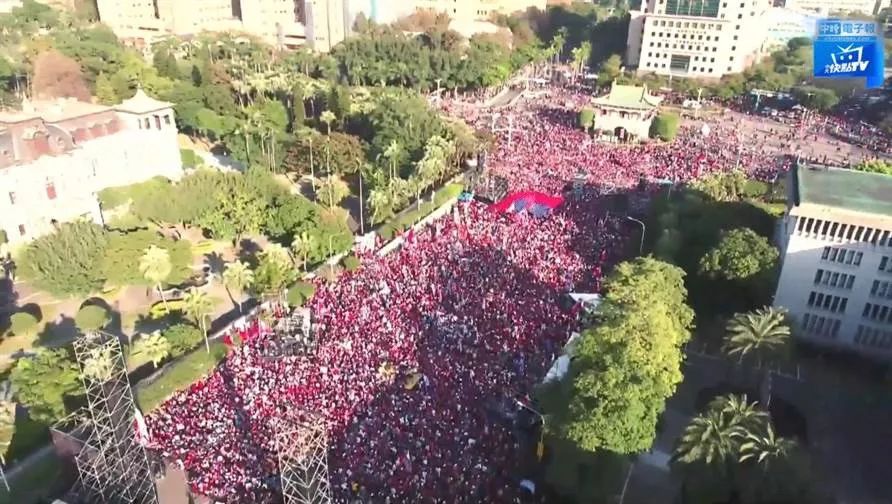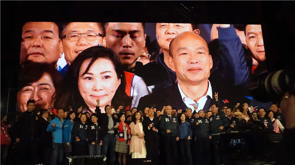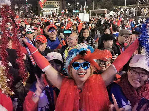 國民黨「總統」候選人韓國瑜陣營昨日在台北凱道舉行「台灣安全人民有錢——凱道勝利晚會」。