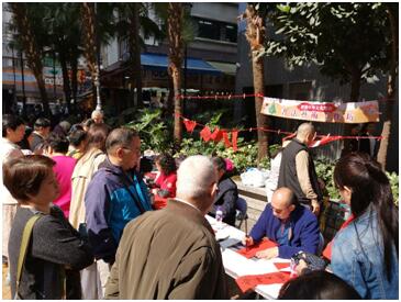 【香港商报网讯】在農曆新年前夕,2020年1月9-11日,香港中華文化總會一連三天在香港中區舉行了由二十多位屬會藝術家組成的《書法藝術工作坊》,深入社區舉辦“迎新春佳節,寫揮春贈送文化進基層”活動,吸引大批社區市民及上班族前來領取合適的揮春。 “龍馬精神”“出入平安”“春”“福”“龍”“福壽祿”“吉祥如意”等吉祥揮春深受各階層市民群眾的喜愛,外國來港的旅客也駐足欣賞,不停地拍照留影。