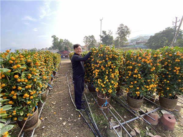 位於大埔林村的強記花園老闆李永強稱,今年年花是豐收的一年,花園種植出數萬棵年花。他指,去年天氣適合種植,季候風不大,8號颱風「韋帕」非正面吹襲本港,當時亦非播種時節,和暖天氣雖影響開花速度,但他亦有方法減緩開花速度。李永強與其他農夫種植方法不同,因為要種植數以萬棵的年花,所以他會選擇將種子分成幾個時段播種,以確保年花可以趕上新春佳節時分出售。他透露,其中一批年花會在人日(初七)開花。
