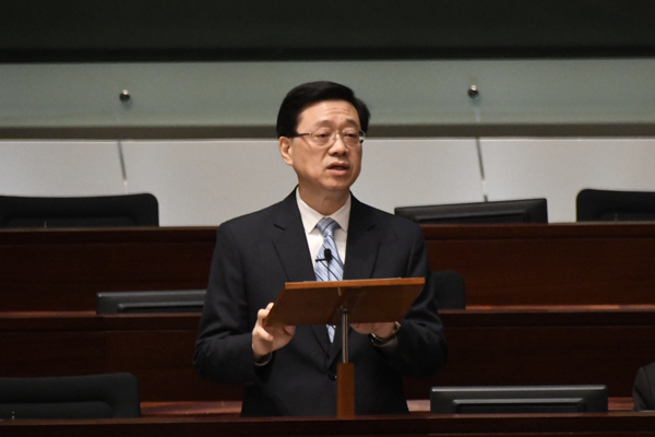 李家超支持警隊添置裝備,有效對付暴行。記者 馮俊文攝