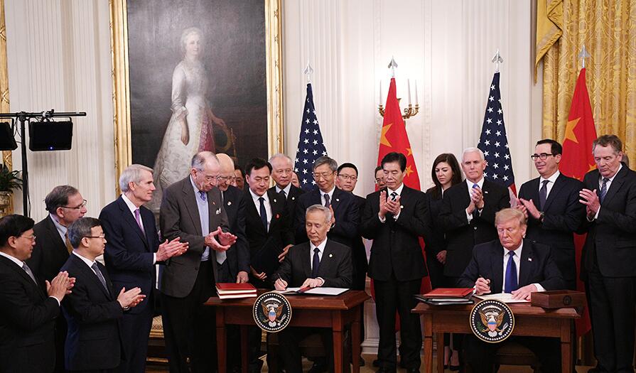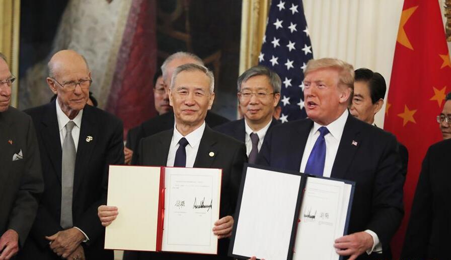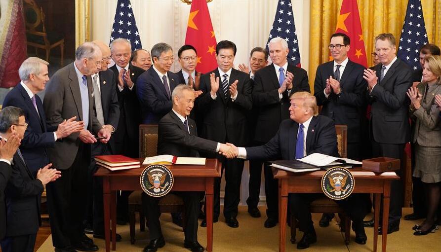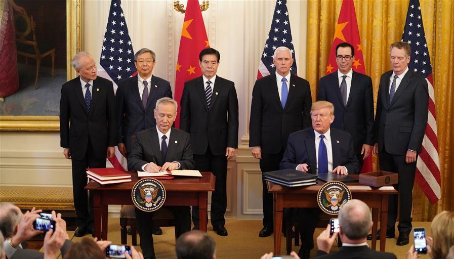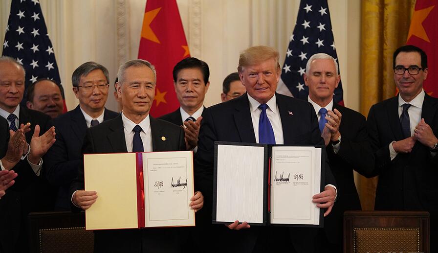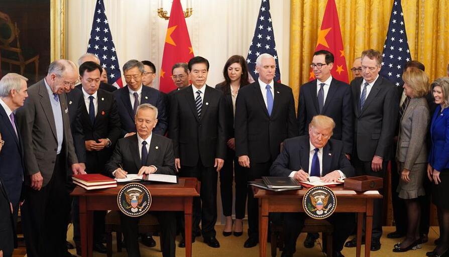 当地时间1月15日,中美第一阶段经贸协议签署仪式在白宫东厅举行。 新华社