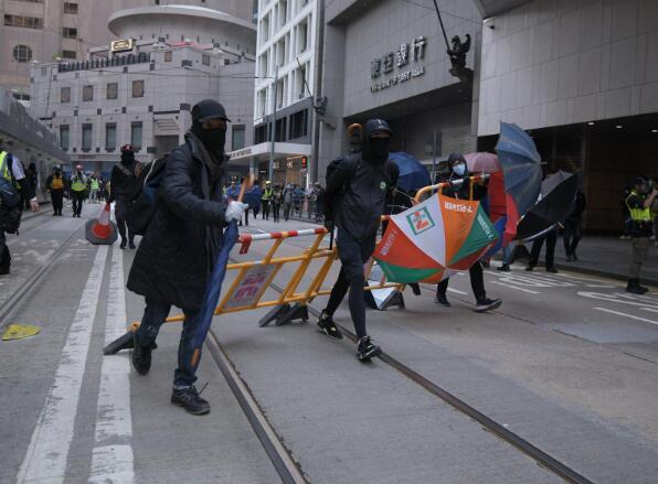 【香港商報网訊】記者馮仁樂、周偉立報道:反對派團體昨日發起所謂「天下制裁」集會,最終再演變成暴力衝擊,更有暴徒以木棍等武器圍毆、「私了」警員,警方譴責該等行為令人髮指。在集會宣布結束後,黑衣暴徒沿金鐘方向堵路及破壞,有人向警員扔擲油漆彈,亦有暴徒破壞交通燈、以雜物堵路,又有人築起傘陣,在雪廠街放火燒紙皮。入夜後,大批黑衣人沿路流竄至銅鑼灣。昨日深夜,特區政府對暴徒襲擊警務人員作出強烈譴責。