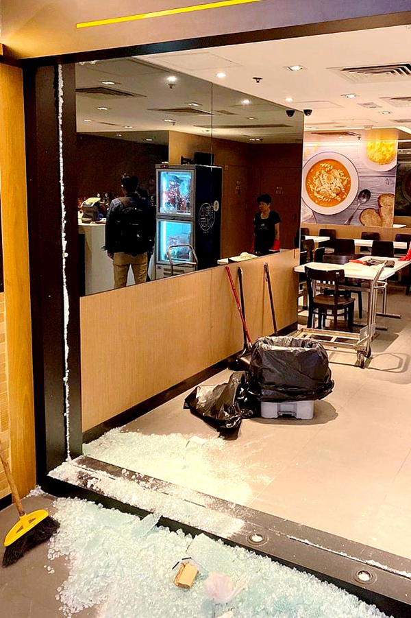 沙田禾輋廣場的美心MX 快餐店被一批暴徒砸毀。網絡圖片