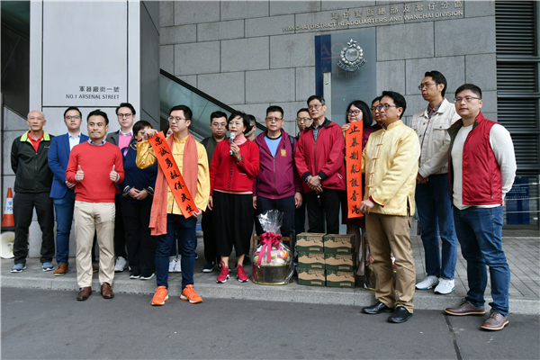 工聯會立法會議員麥美娟、郭偉强、何啟明、陸頌雄、前立法會議員鄧家彪,以及多名工聯會代表共約20多人,中午到警總拜年,將果籃、揮春等物品送給警方代表。揮春特別寫上讚美警隊字句:「忠誠勇毅保民生,止暴制亂護香港」。