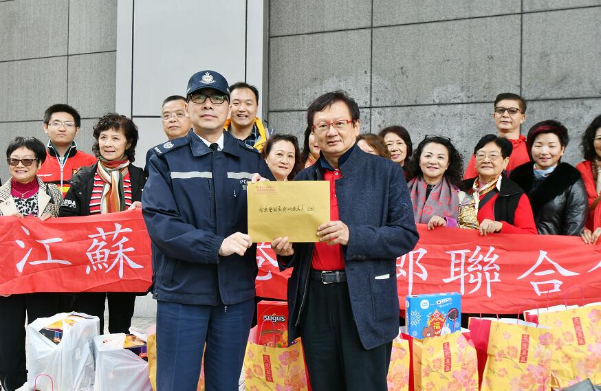 香港警察面對黑暴從不退縮,全年無休維護法治。江蘇旅港同鄉聯合會趁大年初二帶同慰問卡及糖果等到灣仔警察總部慰問警隊,支持警察止暴制亂。