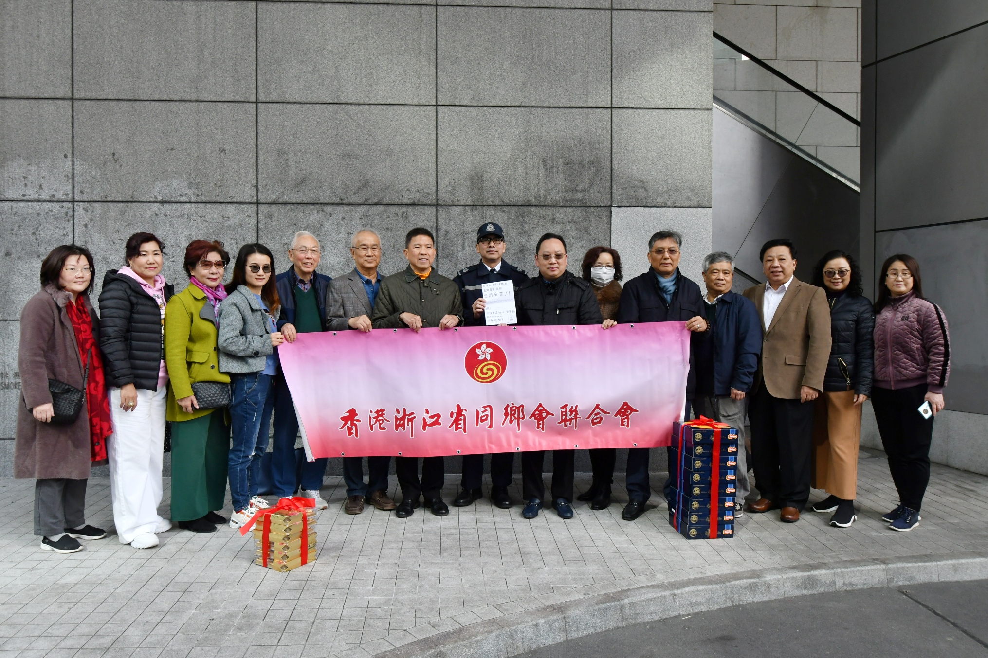 香港浙江省同鄉會聯合會代表到灣仔警察總部为警察打氣