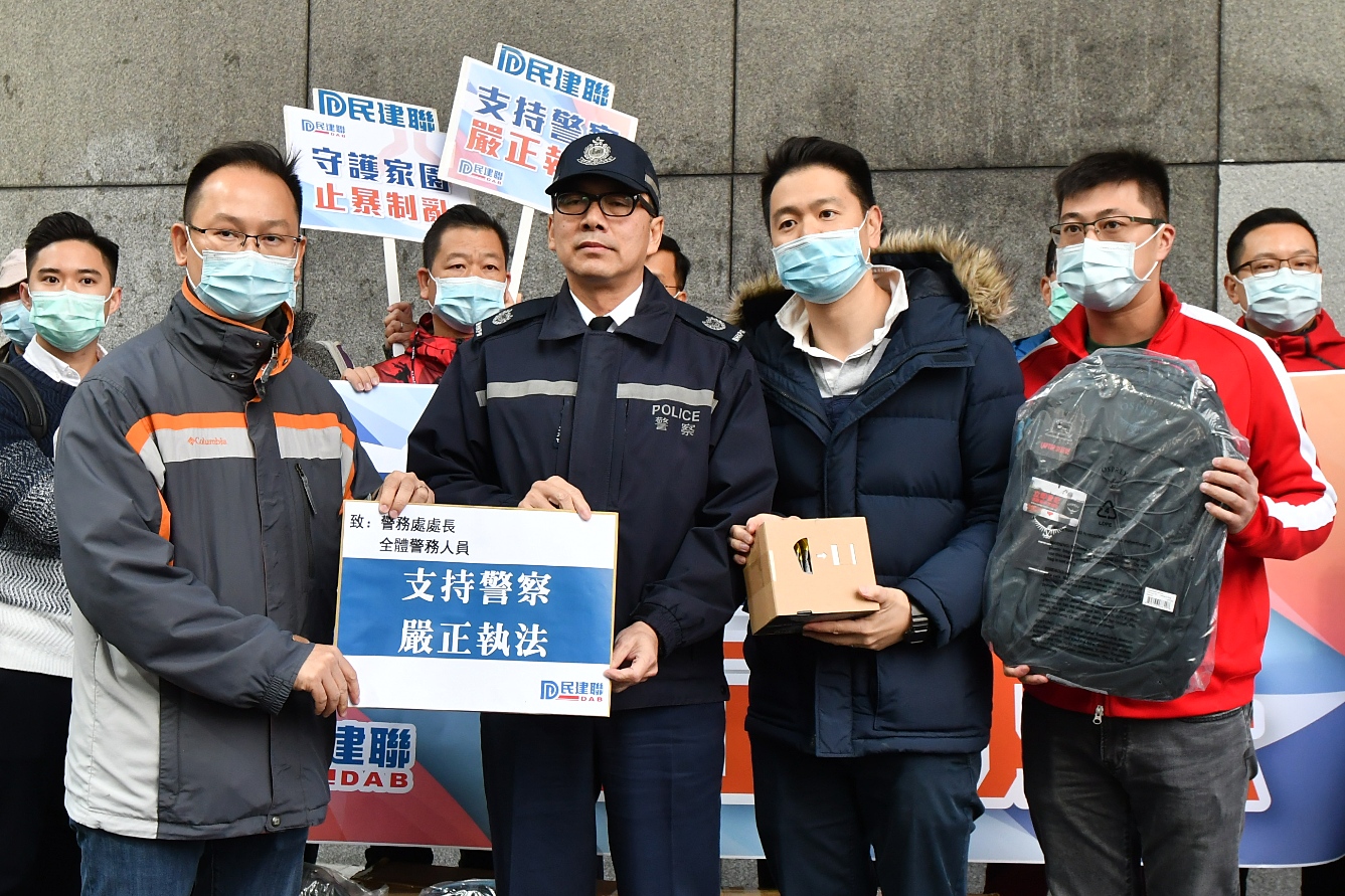 【香港商报网讯】新春期間,仍有暴徒繼續堵路,縱火破壞公共設施。今天大年初三(27日)民建聯20多名議員、社區幹事與義工到灣仔警察總部,送上背囊、手提按摩器及能量食品等物資,慰問新春期間無私維護社會治安的警隊。民建聯立法會議員周浩鼎指,正值武漢新型冠狀病毒肺炎,警方長時間執勤,身心相當疲累,希望警員注意身體健康。