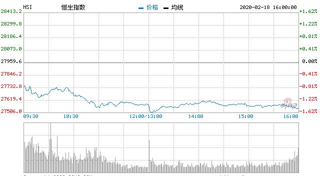 【香港商报网讯】2月18日消息,美股周一(2月17日)休市,三大指数期货收市靠稳,道指期货收涨0.21%,报29457点;标普500期货收涨0.21%,报3388点;纳指期货收涨0.36%,报9666.5点。今日开盘,港股恒指低开0.69%,随后跌逾1%。截止收盘,恒生指数(27530.2, -429.40, -1.54%)跌1.54%,报27530.20点;国企指数跌1.39%;红筹指数跌1.62%,蓝筹股几乎全线下挫。