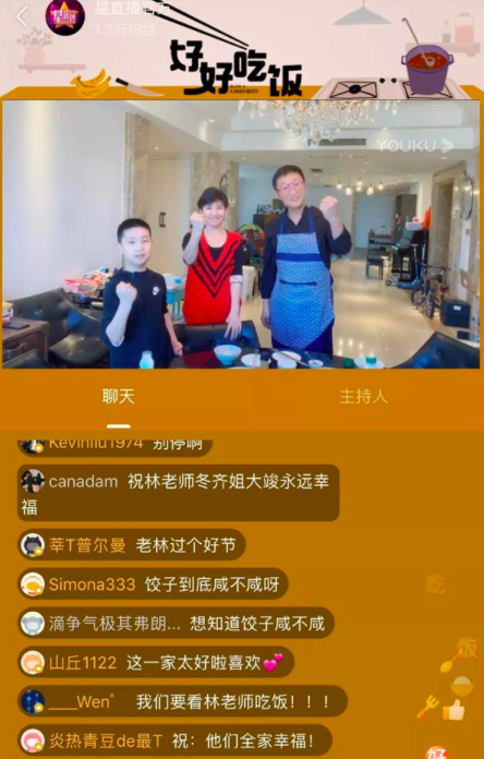 从2月8日元宵节开始,每天中午,都有一位明星在直播节目《好好吃饭》中亮相,一个小时,做饭吃饭,闲话家常。