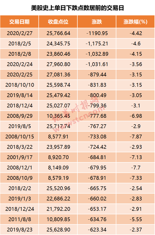 如果以下跌点数来计算,道指隔夜近1200点的下跌,则创下了道指有史以来最大单日下跌纪录!