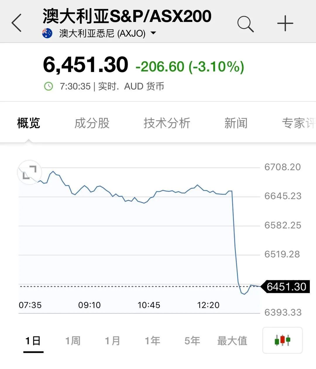 澳大利亚ASX200指数低开 跌幅扩大至逾3%