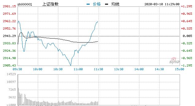 【香港商报网讯】两市今日低开,三大股指盘中一度跌超1%,随后再度走高。临近上午收盘,三大股指下探回升,主板指数先后翻红。盘面上,口罩、特高压早班变现较差的板块先后回升,券商股进一步走强,市场人气较早前有所回暖,赚钱效应转好。截止发稿,沪指报2961.54点,涨0.62%,深成指报11206.56点,涨0.88%;创指报2110.45点,涨0.83%。