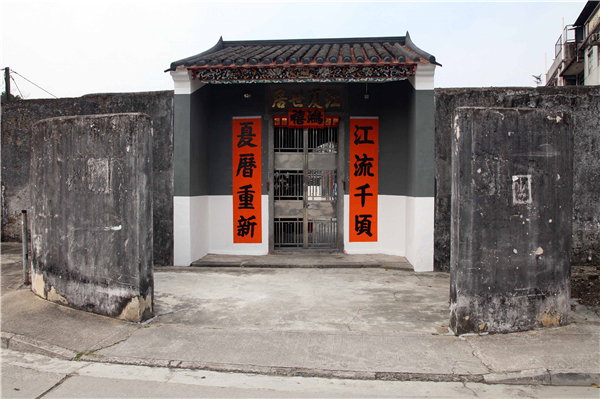 圍門寫上 「江夏世居」 四字,門外建了弧形矮牆擋煞。