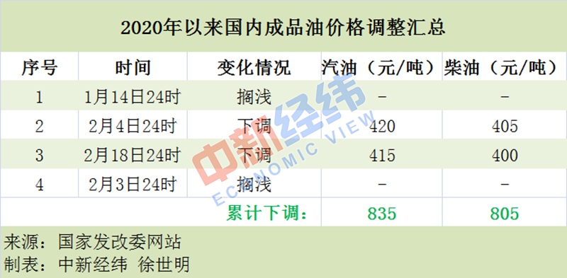 值得注意的是,今年以来,国内成品油价格已经历4轮调整,呈现“二降二搁浅”格局。汽油价格累计下调835元/吨,柴油价格累计下调805元/吨。