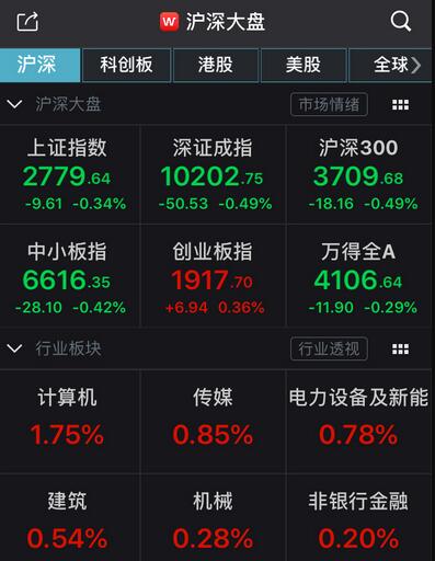 【香港商报网讯】两市今日高开后迅速跳水,深成指、创业板指早盘一度跌超3%,临近午盘,三大股指成功翻红。A股午后冲高回落,创业板指一度上涨1.4%,随后三大股指翻绿,临近收盘,创业板指翻红。截至收盘,沪指跌0.34%,深成指跌0.49%,创业板指涨0.36%。两市合计成交8181亿元,行业板块涨少跌多,北向资金今日净流出71.42亿元。