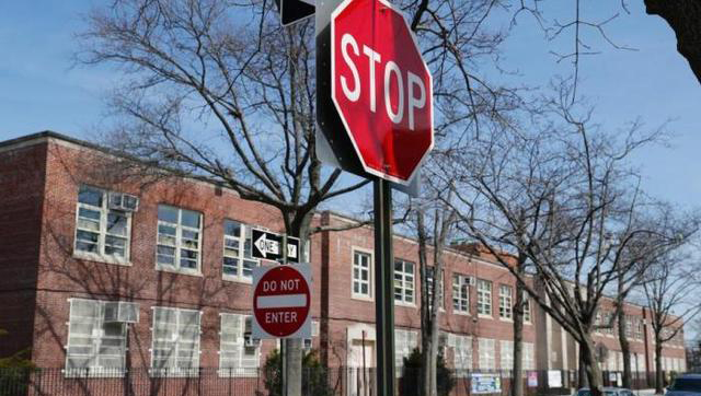 图为美国纽约市皇后区一间关闭中的公立学校。 中新社记者 廖攀 摄