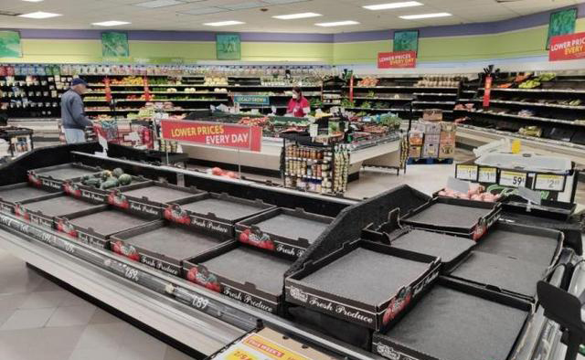 当地时间3月17日,美国旧金山湾区圣马特奥县一家超市的多种商品供不应求。中新社记者 刘关关 摄