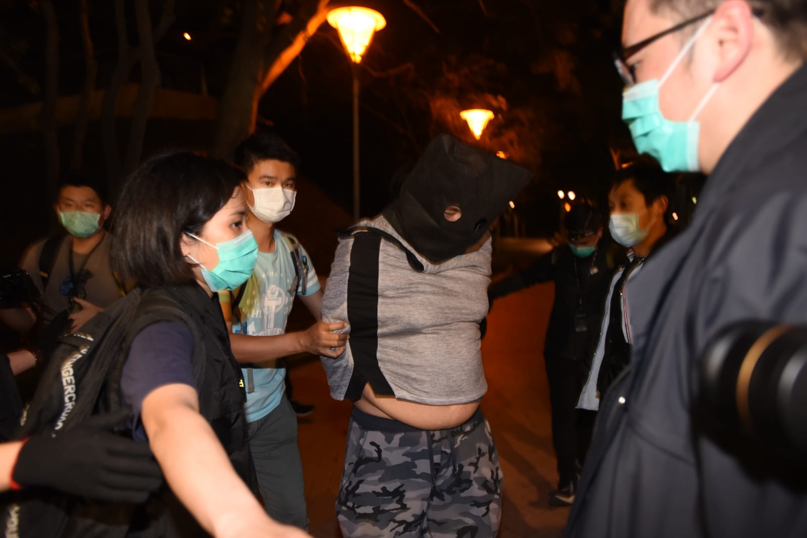 當場被捕的3名男子,其中1人20歲、另外2人均23歲,同涉「藏有攻擊性武器」、「無牌管有槍械或彈藥」及「藏有工具可作非法用途」被捕,現正被扣留調查。警方表示,行動中檢獲懷疑爆炸品、一批攻擊性武器、一批子彈及一批汽油彈原材料。