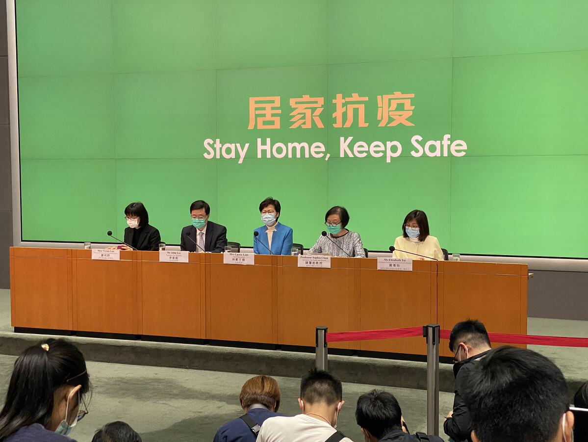 【香港商报网讯】记者梁希贤报道:在正在举行的记者会上,特区政府行政长官林鄭月娥宣佈一系列新防疫措施。包括禁止超过4人的聚集等,3月29日星期日凌晨生效,为期14日。