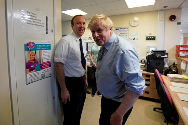 英國首相約翰遜和衛生大臣漢考克(左)27日先後宣布確診。資料圖片