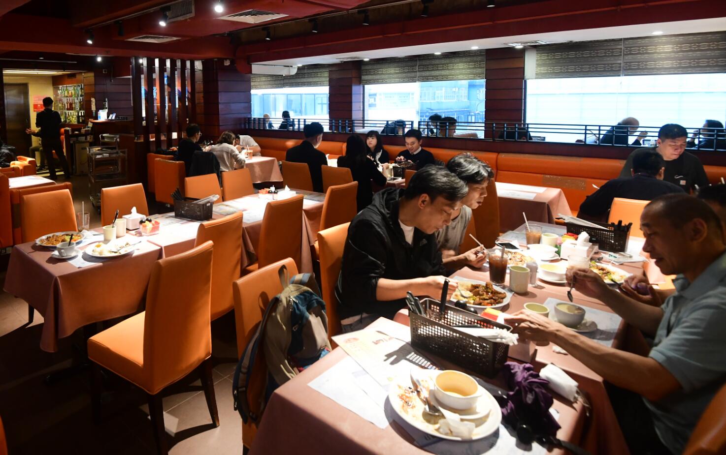 昨日為限聚令實施後首個工作天,各區食肆於午市時間多自律採分隔措施。 記者 崔俊良攝