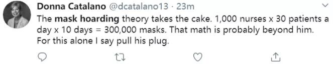考虑到特朗普数学不好,有网友替他算了笔账,告诉他为什么口罩需求会激增到30万个。