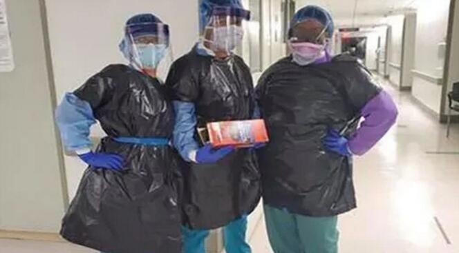 纽约一家医院,护士用垃圾袋充当防护服(图源:脸书)