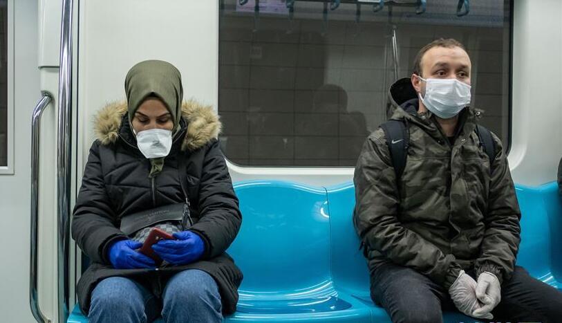 在土耳其伊斯坦布尔,市民戴口罩乘坐地铁。新华社