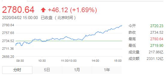 截止收盘,沪指报2780.64点,涨1.69%,成交额为2331亿元;深成指报10179.20点,涨2.28%,成交额为3646亿元;创指报1916.95点,涨2.80%,成交额为1177亿元。两市成交额约6000亿元;北向资金净流入规模约60亿元。