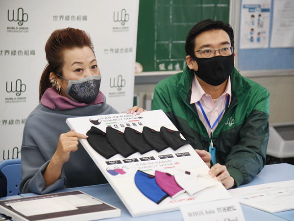 世界綠色組織介紹最新推出的遠紅外線口罩。記者蔡啟文攝