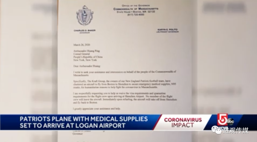 3月24日至3月30日,州長貝克、美國國務院、克拉夫特的老爸羅伯特·克拉夫特(愛國者俱樂部老闆)等先後致信中國駐紐約總領館,希望批准這趟人道主義運輸請求。他們承諾機組人員在中國境內不下飛機,以避免14天隔離。