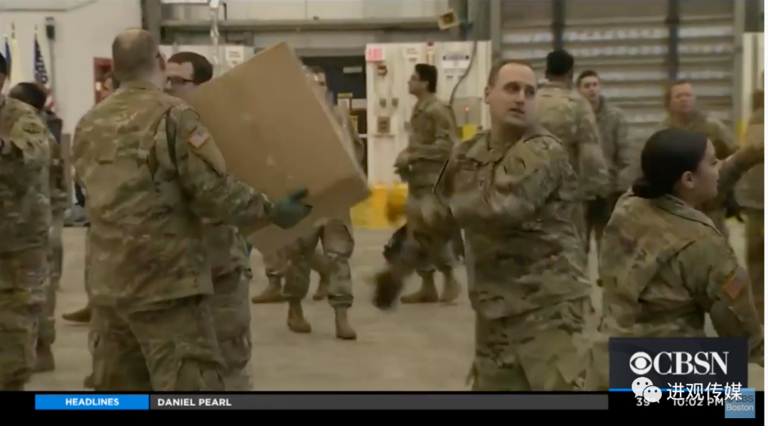 美國軍人在機場幫助卸貨(CBSN截屏)