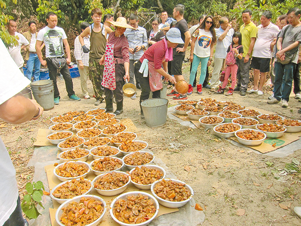 山頭即場登記,每丁獲派50元,回到祠堂分豬肉。