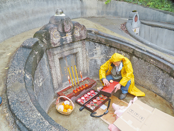 屏山鄧族龍鼓灘春祭取消食山頭,陰濕天雨下,出席族人少,並要輪流拜祭,免同時間聚集太多人。記者 鄭玉君攝