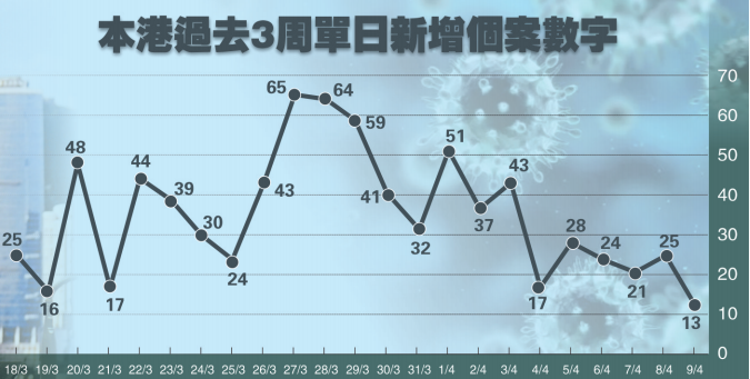 【香港商報网訊】記者何加祺報道:本港昨日新增13宗新冠肺炎確診個案,雖然累計共有973宗確診個案,邁向1000宗,但昨日新增的確診個案總數,為過去三星期本港進入「雙位數」確診個案以來最低,反映政府加強抗疫措施及廣大市民自覺遵守防疫措施帶來成果。衛生防護中心傳染病處主任張竹君表示,單日數字不能代表整個趨勢,有部分個案仍未能追蹤感染源頭,市面仍有隱形傳播者,會密切留意情況,期望社區爆發的機會輕微。