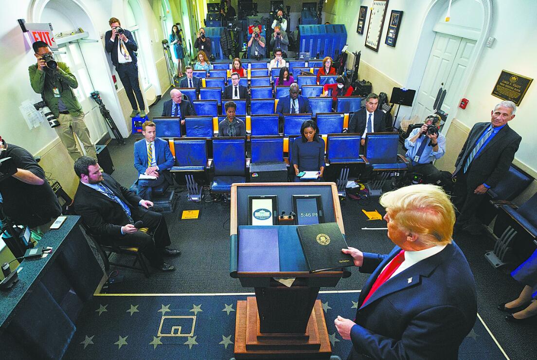 当地时间8日,美国总统特朗普在白宫的每日新冠肺炎疫情简报会上再次攻击世卫组织。