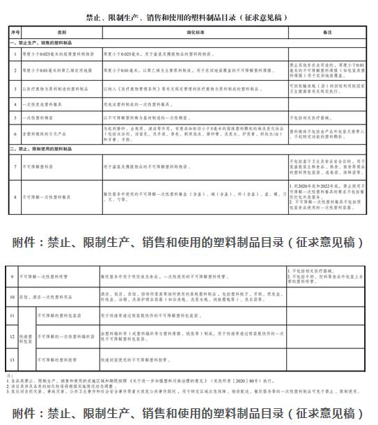 原标题:关于《禁止、限制生产、销售和使用的塑料制品目录(征求意见稿)》公开征求意见的公告