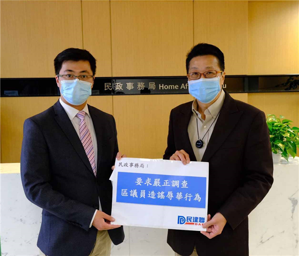 【香港商報网訊】民主黨觀塘區議員洪駿軒、梁翊婷公然以區議員身份在裕民坊及翠屏邨掛起多條侮辱國家的橫額。民建聯觀塘區議員顏汶羽收到大量居民及網民投訴,指兩人身為區議員竟用公共資源在區內懸掛虛構及侮辱性的橫額,對此感到非常憤怒。顏汶羽向民政事務局遞交請願信,要求局方及相關政府部門、執法機關徹查事件,如查明行為屬違法,必須嚴正執法。