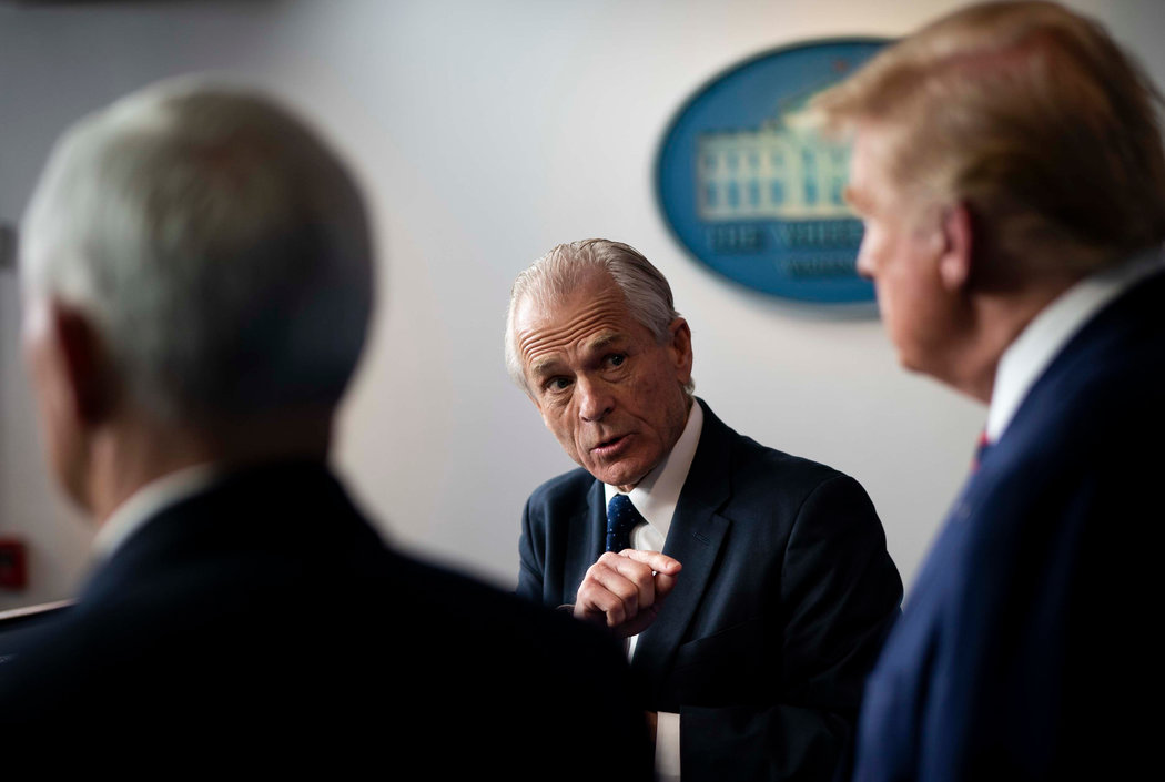 特朗普的贸易顾问彼得·纳瓦罗曾发出警告,称一场大流行会导致成千上万人丧生和数万亿美元的经济损失。 DOUG MILLS/THE NEW YORK TIMES