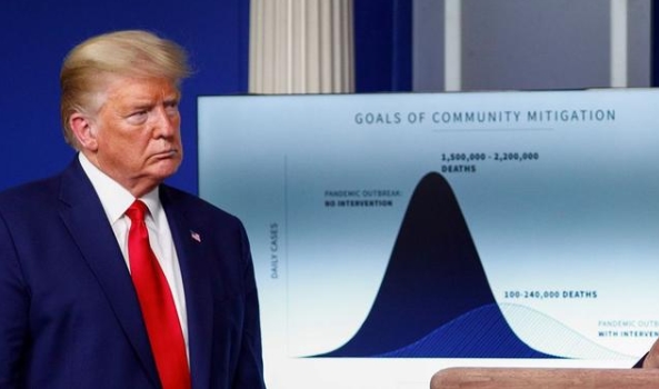 经过数月淡化冠状病毒的严重性,并抵制要求采取严厉措施遏制它的呼吁,在给自己加冕为战时总统之后,特朗普似乎终于屈服于冠状病毒的现实。