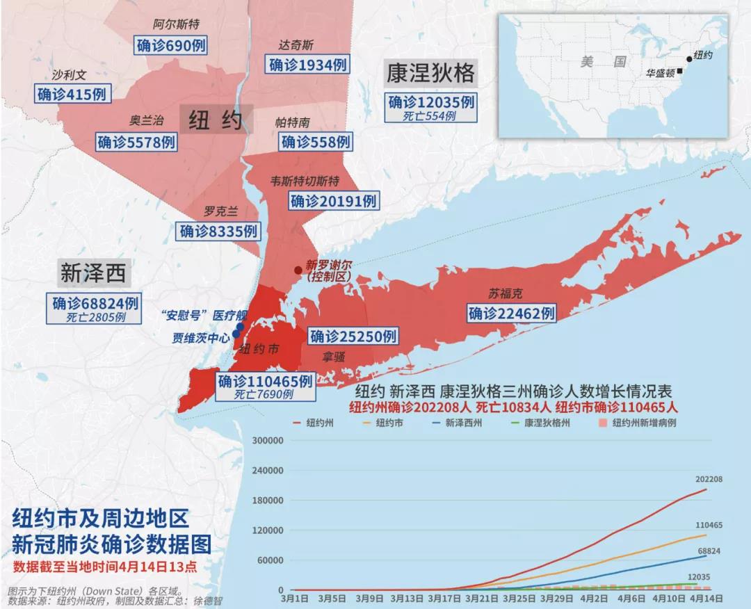 当地时间4月14日,根据纽约州每日新冠肺炎疫情通报,目前纽约州单州确诊新冠肺炎确诊病例已经达到了202208例,突破了20万例。根据统计,13日纽约州再新增新冠肺炎死亡人数778人,使得总死亡人数达到了10834人。